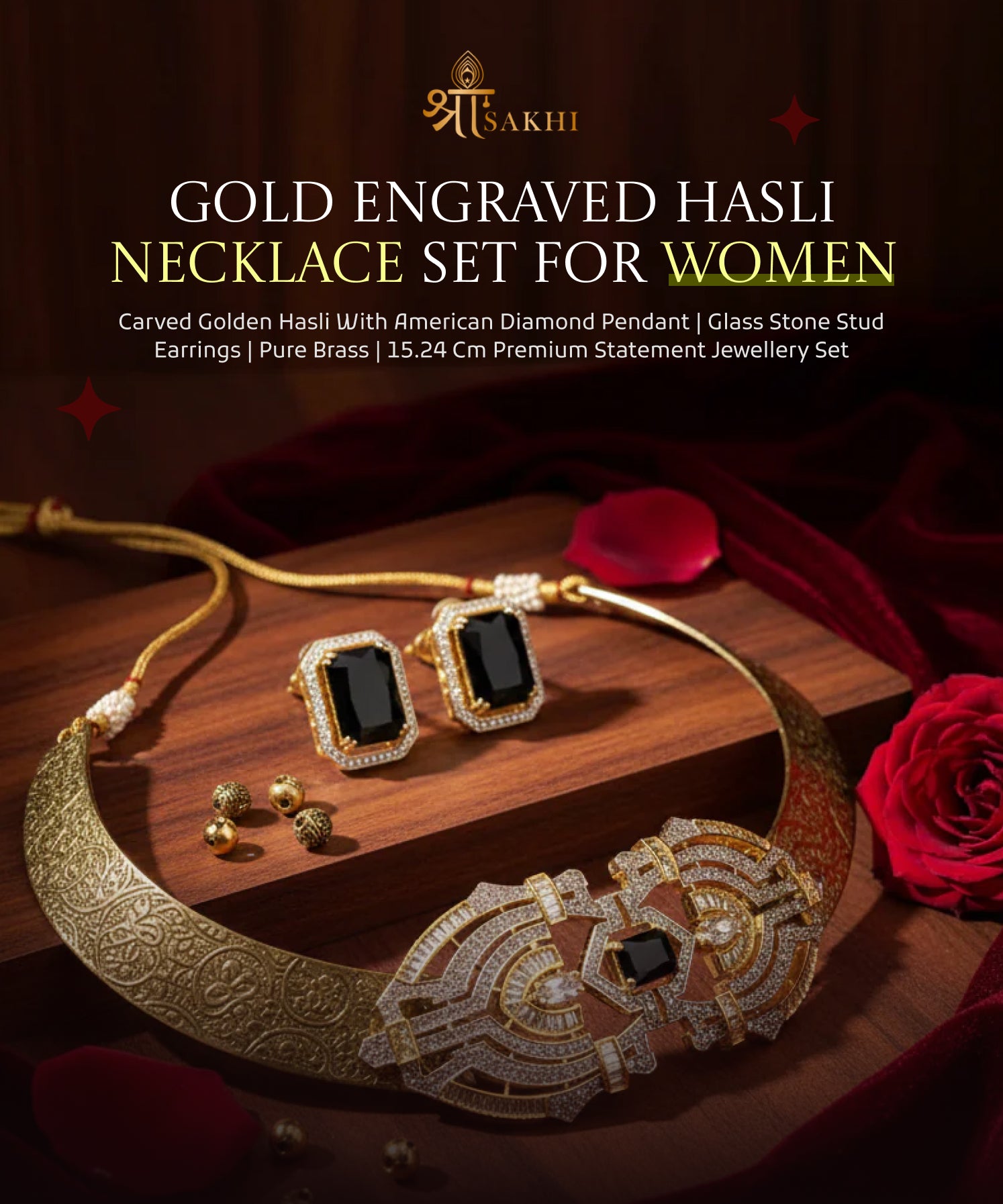 Golden dropping Hasli Set with Studs