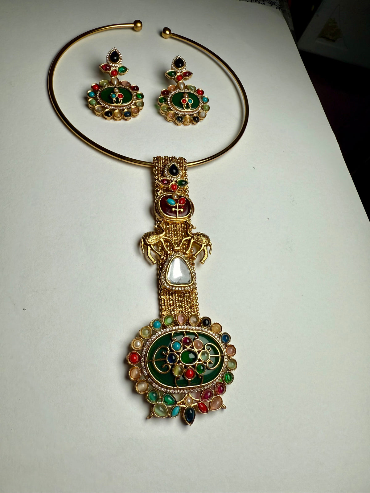 Rajwadi Camel Multistone Kundan Hasli Set | Moissanite & Pota Stone Designer Earrings