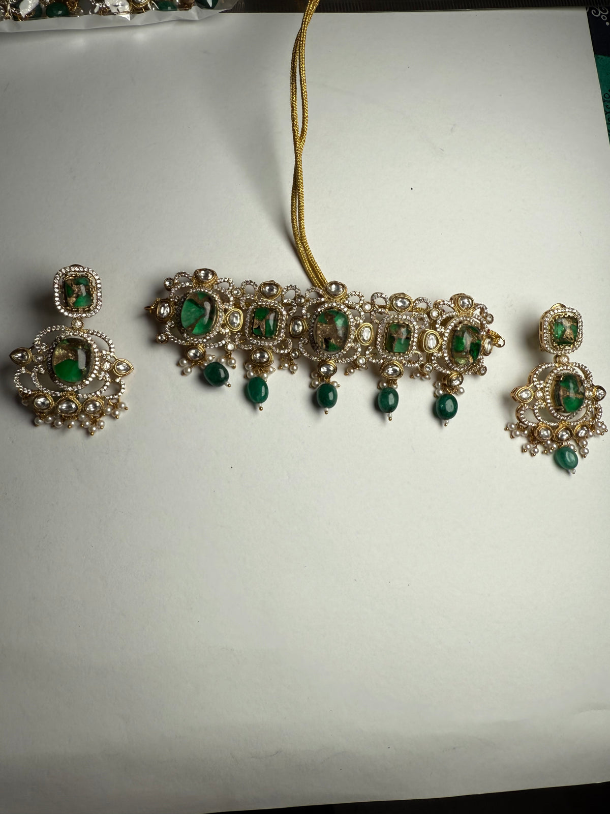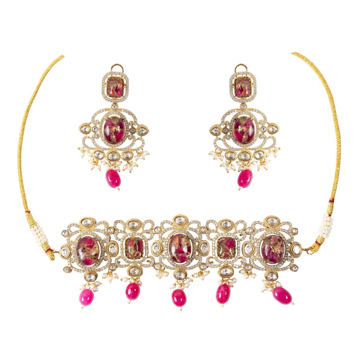 Royal Multi-Stone Polki Kundan Necklace Set | AD Onyx Beads Choker with Chandbali Earrings | Premium Golden Finish