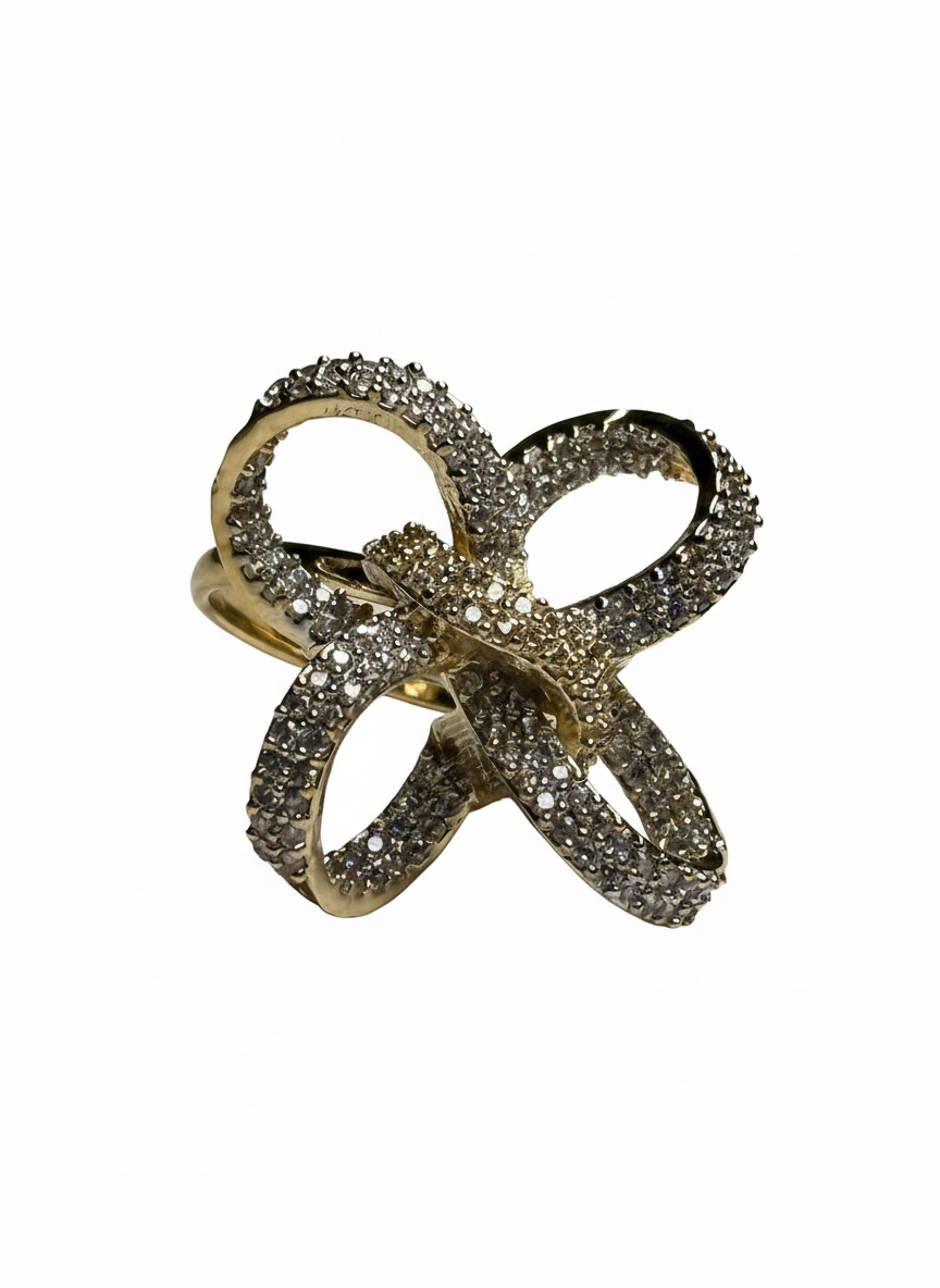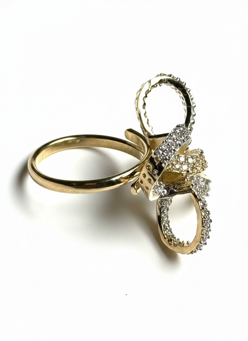 Stylish Knot American Diamond Adjustable Ring for Women | Premium AD Stones | Rhodium Polish | Pure Brass | 0.51 cm Elegant Knot Design Ring | Golden & Silver